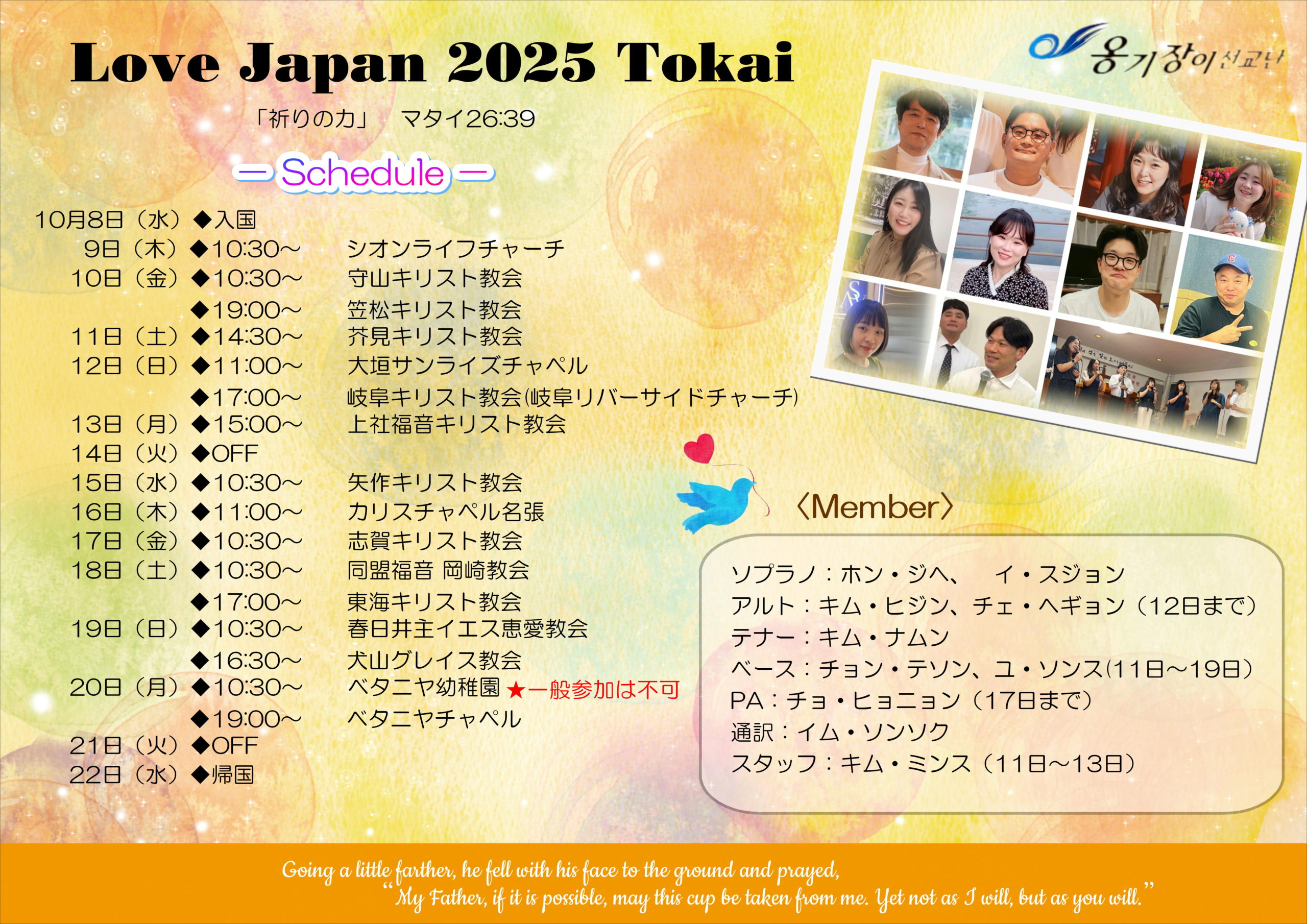 来週の金曜日に帰国し、8日には愛知入りしますので、健康が守られるようお祈りください。