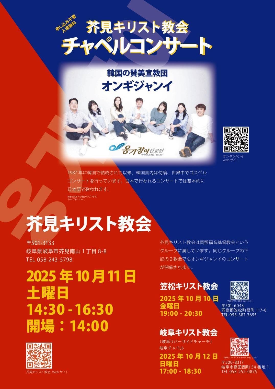 2025年10月10日 / 最終更新日時 : 2025年10月11日 joyairin24 BLOG 東海ツアー3日目終了! Love Japan 2025 東海ツアー♬ 10/8〜10/22 『祈りの力』 マタイ26:39 ツアー3日目の本日は、守山キリスト教会と笠松キリスト教会の2か所で開催されました。 小さなお友達から90歳以上のご高齢者まで、 60名以上の方が来場され、賛美と証に熱心に耳を傾けておられました。 ツアー4日目となる明日は、芥見キリスト教会にてコンサートが開催されます! 14:00 Open / 14:30 Start Follow me! FacebookXBlueskyHatenaCopy